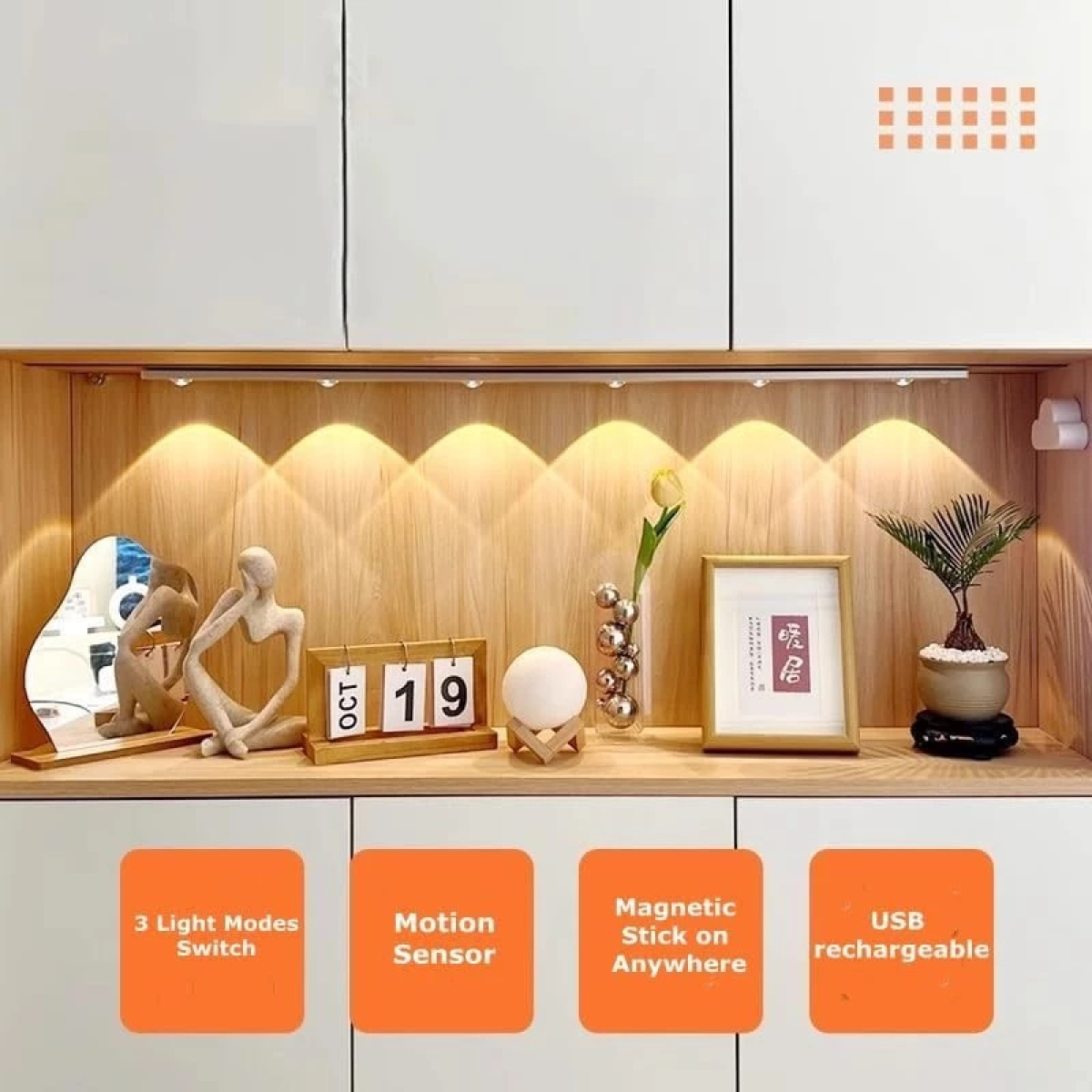 Esta luz de armário é projetada com forte sucção magnética, que é resistente e não cai. Pode ser facilmente removido para carregar. A luz do sensor liga 5-8 vezes ao dia e pode ser usada continuamente por até 2 meses. O tempo de iluminação contínua é superior a 5 horas. Com o sensor de movimento automático, quando as pessoas chegam, a luz ligará. Se estiver dentro da faixa de detecção, a luz permanecerá ligada e desligada automaticamente quando sair do alcance.