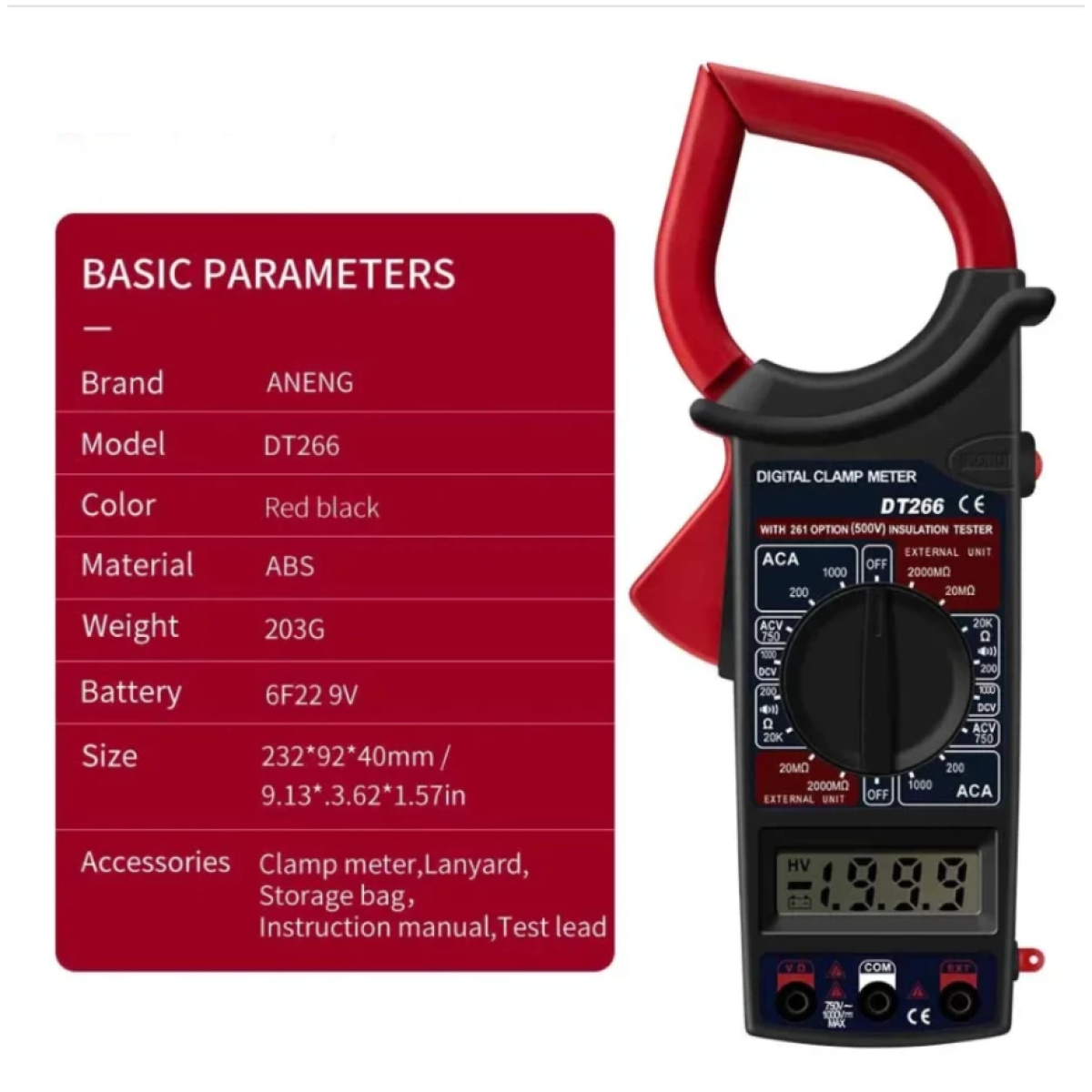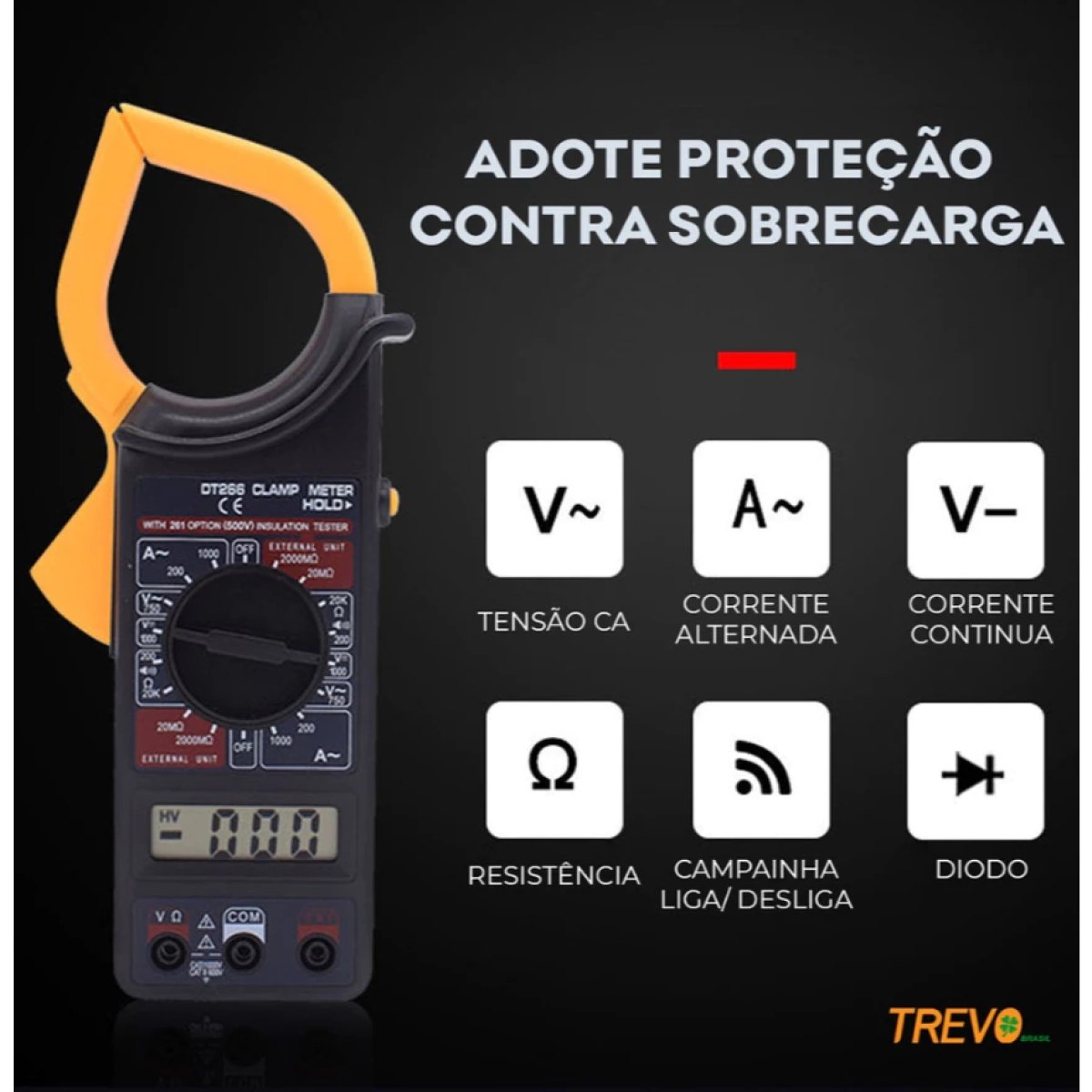 Multímetro Alicate Amperímetro Digital ferramenta Portátil C/ Estojo DT266