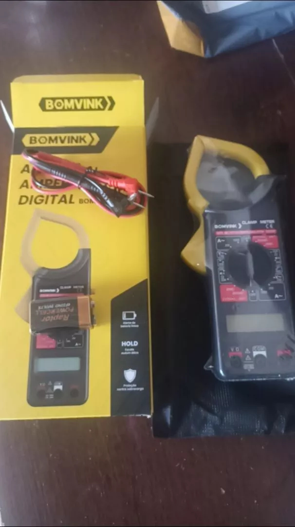 - 1 alicate amperimetro preto e amarelo;