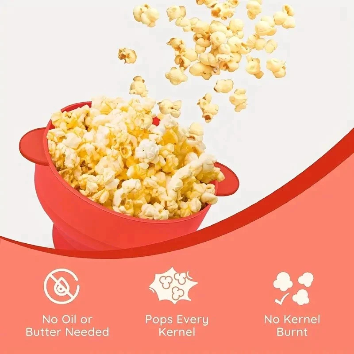 Grande máquina de pipoca de micro-ondas balde de pipoca sem óleo de Silicone redondo com tampa sem BPA