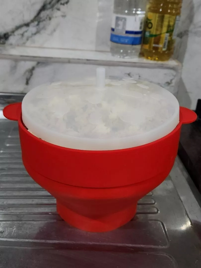 Balde de Silicone para Pipoca Em Microondas Sem Refil. A pipoca leva apenas alguns minutos e seus lanches têm certeza de ser mais saudáveis e mais deliciosos. É Completamente Confeccionado em Silicone Vermelho, Que É Muito Bonito E Muito Indicado Para Uso Doméstico, E A Tampa Possui Selagem Perfeita. Basta colocar sobre meia copo de grãos de pipoca no balde, fechar A tampa e aquecer no microondas por cerca de 4 minutos. Preparar Pipoca Em Forma Mais Saudável Nunca Fz mais Fácil E Delicioso! Descrição: Material do produto: Material do Silicone Peso do telefone: 290g Cor vermelha Temperatura de Trabalho: -40°C a 230°C Itens Inclusos: Máquina de pipoca de Silicone 1 Boné de Silicone