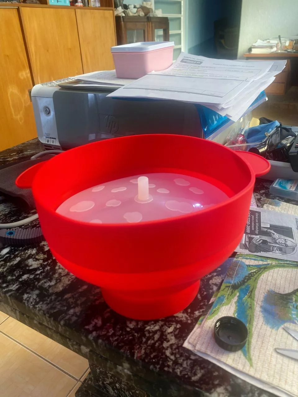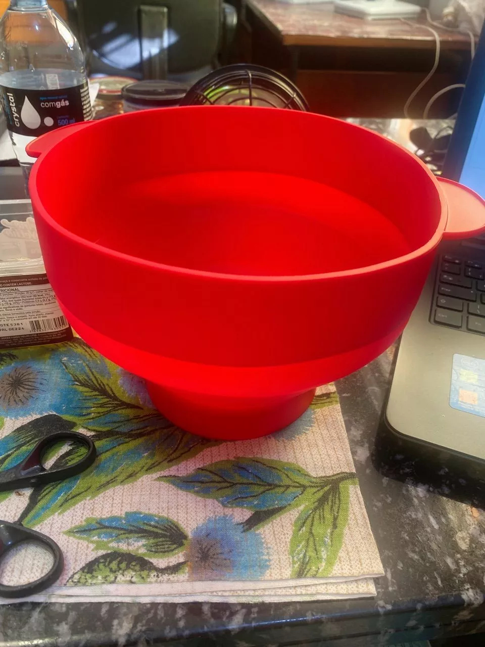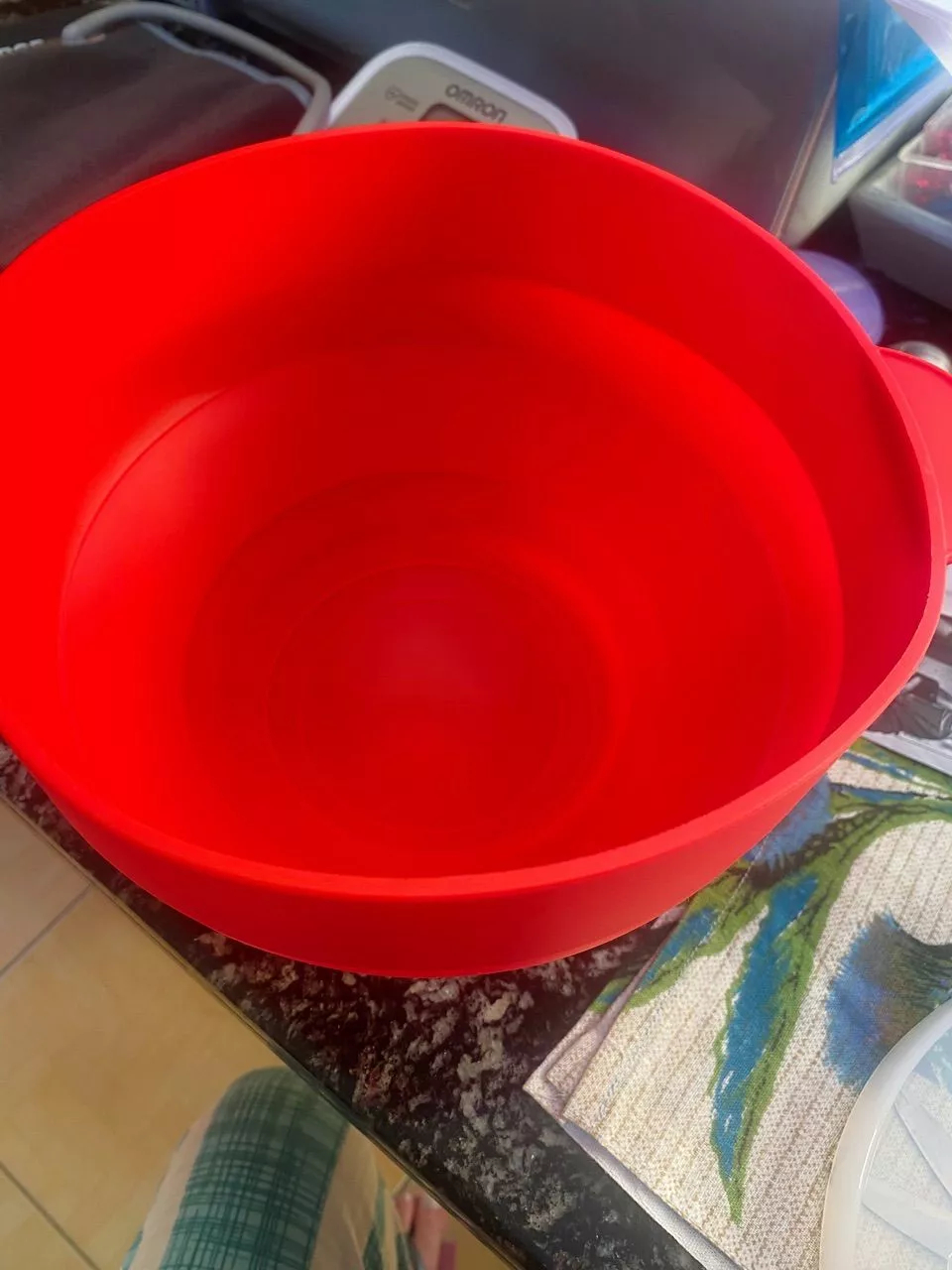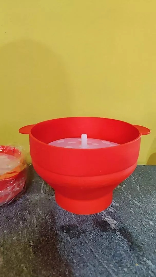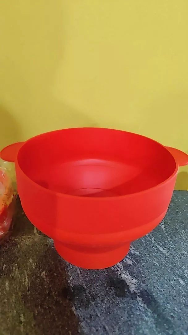 A pipoqueira de silicone para microondas é enorme! Uau! Eu amei! Em breve vou testar. Comprei uma para mim e outra para meus pais. Uma amiga que me indicou a comprar e disse que funciona super bem. O material é condizente com o especificado.